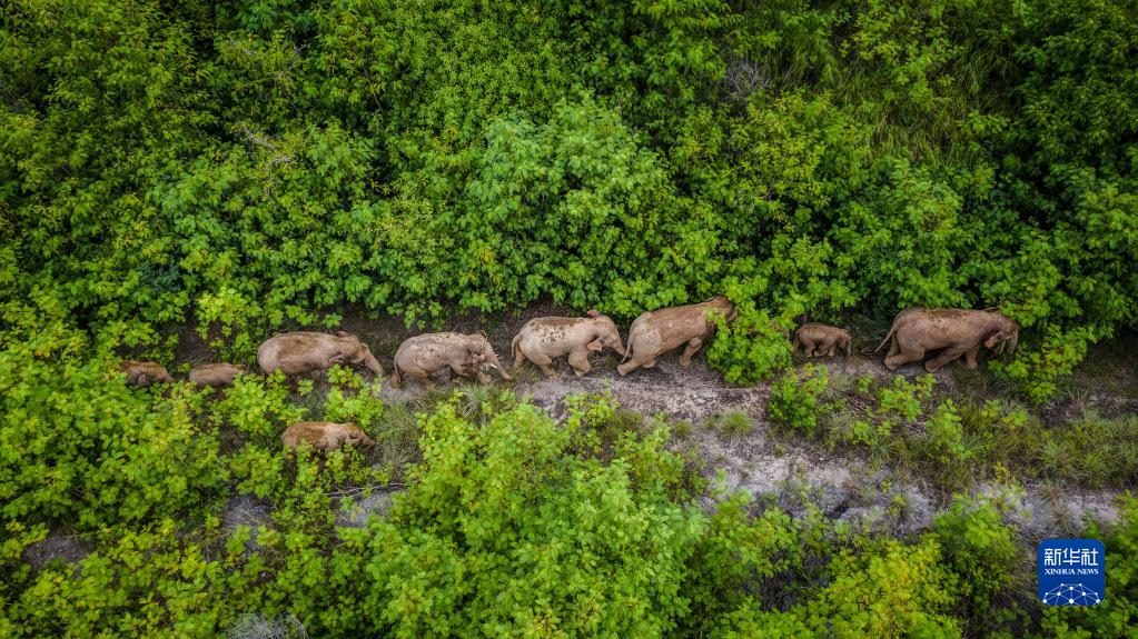這是在云南省玉溪市元江縣境內(nèi)拍攝的象群(無(wú)人機(jī)照片,2021年8月9日攝)。新華社記者 胡超 攝